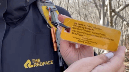 So an emergency hiking tag is something I hope I’ll never need, but I feel a bit of added insurance with it. Unfortunately I can’t link to where to purchase one as I made this myself, but here is a link to a template file if you would like to use it. First make a copy in Google Drive, then you can edit it from there. I have one side in English with my husband’s contact number and pertinent info about me; such as blood type, prescription medications, etc. The other side is in Korean with a Korean speaker’s contact number and the same information. I simply printed it out, glued it together, and laminated it. Attaching it to a carabiner means I can put it on whatever backpack I’m using that day.