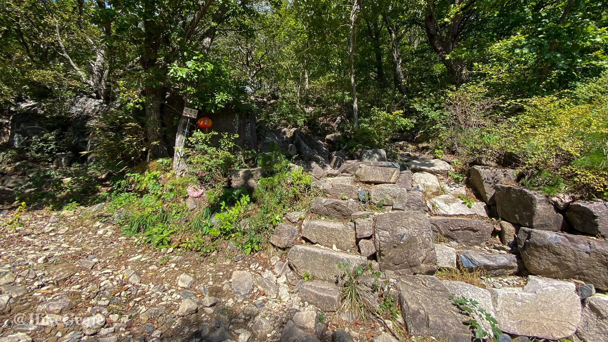From here, you'll have just over 2km to reach Jaeyaksan. Follow the trail and it won't be long until you reach a gravel roadway. From here, turn left and follow the roadway.