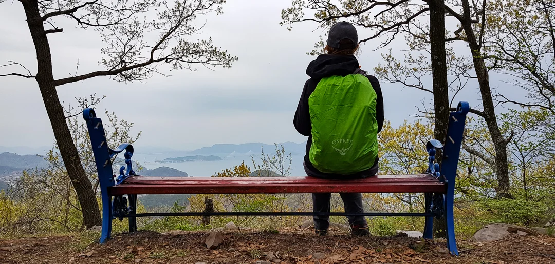 As you’re hiking, you’ll catch some glimpses of the view towards the Geoga Bridge, but the best views are yet to come. You’ll climb a set of stairs, and once you emerge at the crest of that hill, there will be another set of steeper stairs to climb. Don’t worry, the peak is at the top of the second set of stairs. Here you’ll find two benches (both old and new) and a great view from the top!